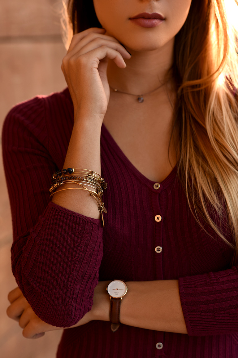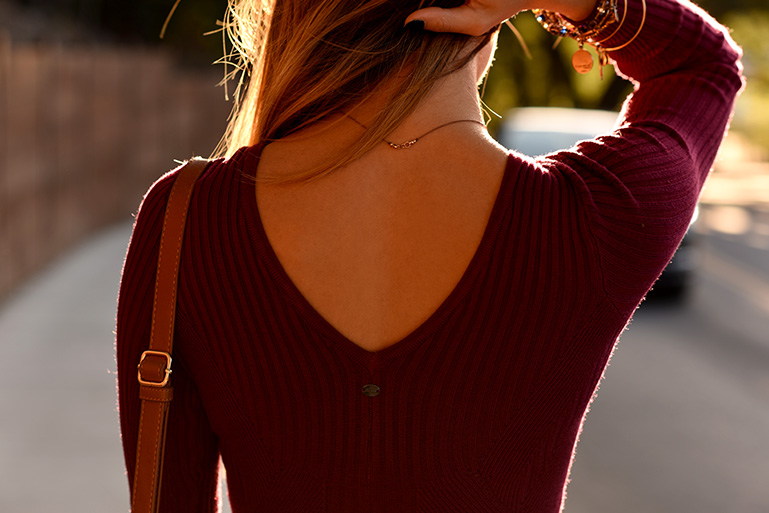 I've had this bag for a long time and I always seem to pair it with burgundy sweater style items, black and the same cognac boots. You can see it in this post and this one too. I especially love how sexy casual this dress is, and it really hugs the body in such a great way. Sweater dresses are a must have for Fall ;)