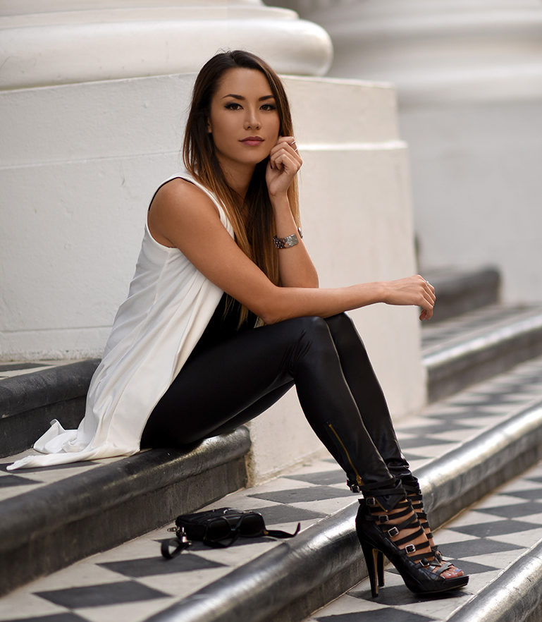 What can I say? I love adding a hint of red to an otherwise black and white outfit. The red lips were the cherry on top. I wore this to a lunch date but then brought a pair of converse and high waist denim shorts to change into for more casual activities a little later.